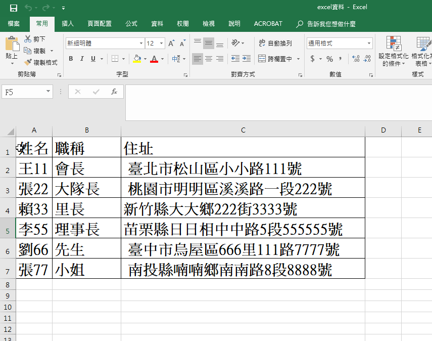 將所有人的姓名、職稱、住址等用Excel建立資料儲存
