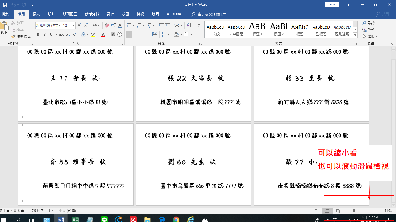 依信封大小製作Word檔。