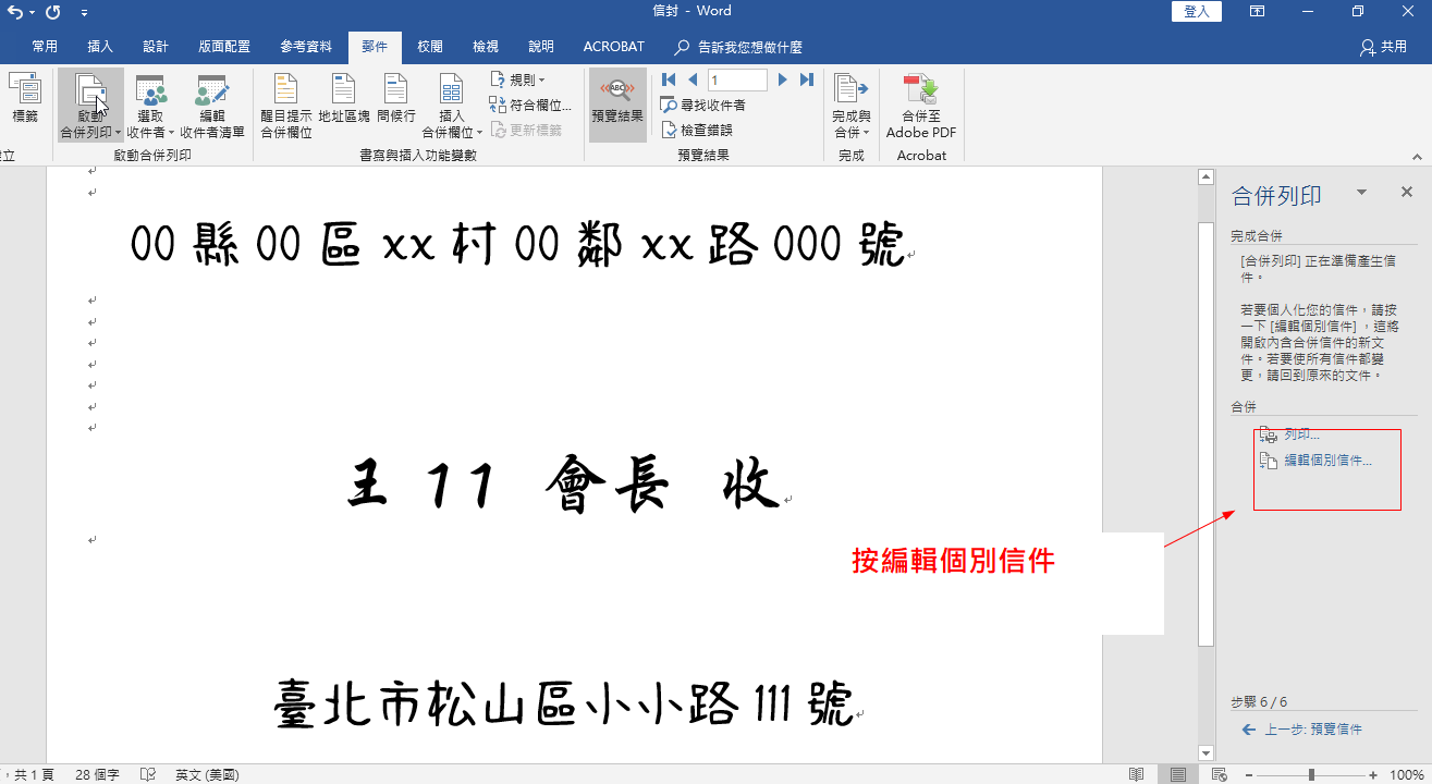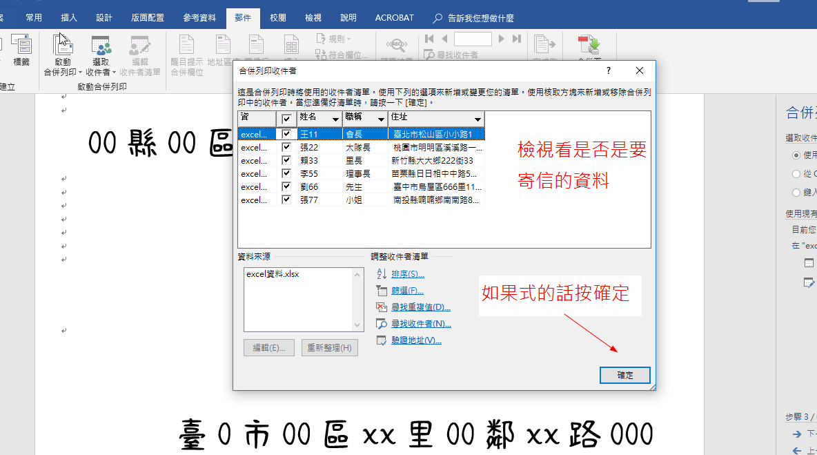 Word 結合 Excel 資料合併列印~大量寄信時列印信封上的住址及收件人姓名職稱