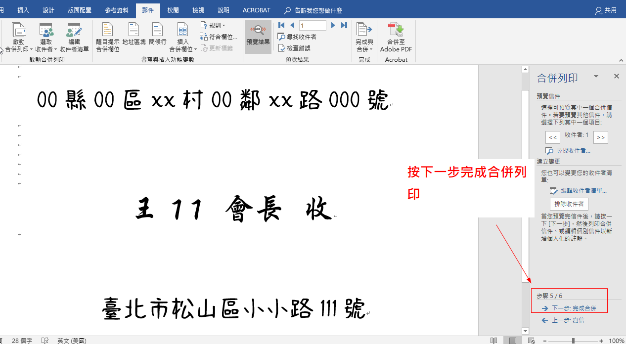 14、按下一步完成合併列印
